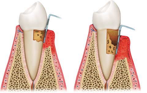 El tratamiento en estos casos es la descontaminación bacteriana en profundidad bajo anestesia local y con diferentes técnicas en función de la gravedad de cada caso. Desde el tratamiento de curetajes o raspado y alisado radicular hasta las diferentes técnicas de cirugía periodontal.